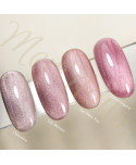 Magnetyczny, różowo-fioletowy lakier hybrydowy z mniejszą drobiną, tworzący welurowy efekt.